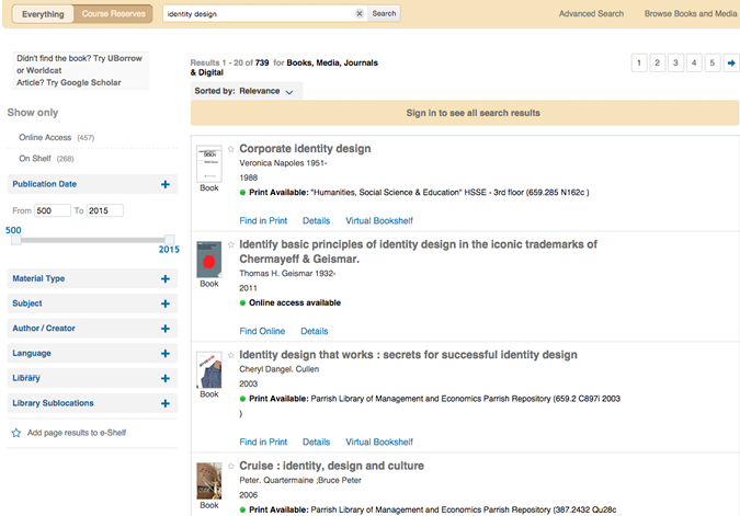 There are a number of causes for errors in the search tasks. Beginner users had difficulty in identifying (such as clicking on print books instead of e-books) and limiting the format (material type) of search results, which resulted in choosing articles or print books instead of e-books. The discovery tool (Primo) does not have a dedicated facet for e-books; instead, participants had to use a combination of “Online Access” and “Books” facets to limit search results to e-books. While the “Online Access” is obvious in the list of facets of Primo, beginners were not familiar with the fact that the “Books” facet is inside the “Material Type” group. This lack of direct facet for e-books also resulted in beginners spending time visually identifying e-books from the search results without applying any facet.