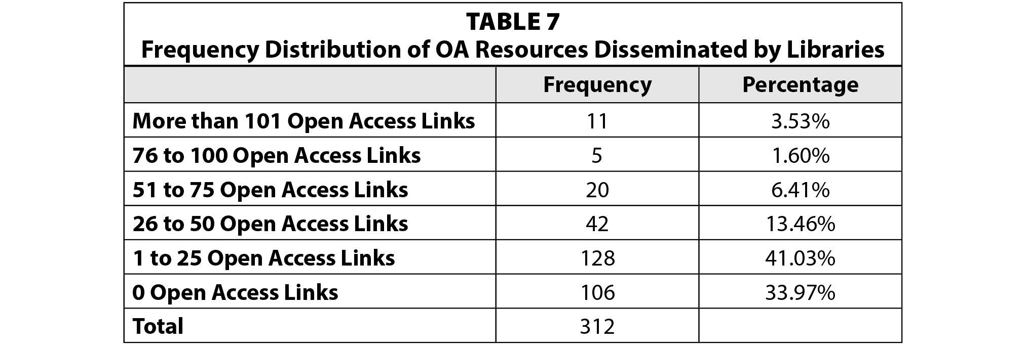The OA links shared by libraries are also dependent on the number of OA resources available on the respective disciplines. The fields that topped the list also reflect the growth of OA in various fields. According to Severin et al. (2018), there are varying proportions of openly accessible research outputs across disciplines depending on how scholars from different disciplines embrace the concept of OA and on the relative importance of publication channels used by scholars. The category of multidisciplinary sciences has the highest gold OA percentage in Web of Science (Wang et al, 2018). Although the data of Piwowar et al. (2018) showed that biomedical sciences had the highest OA prevalence, a disclaimer was made to indicate that multidisciplinary journals were categorized under biomedical research. These recent statistics coincide with the findings that multidisciplinary resources are the most shared OA resource among libraries due to the growth of multidisciplinary OA publications.